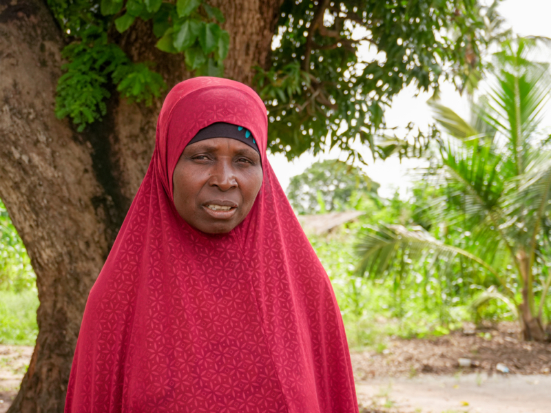 Isabel Carlos Pereira, de 50 anos, foi deslocada de Mazua, no distrito de Memba, e buscou refúgio em Alua Velha, onde recebe atendimento na clínica móvel de MSF, em Moçambique. ©Sofia Minetto/MSF