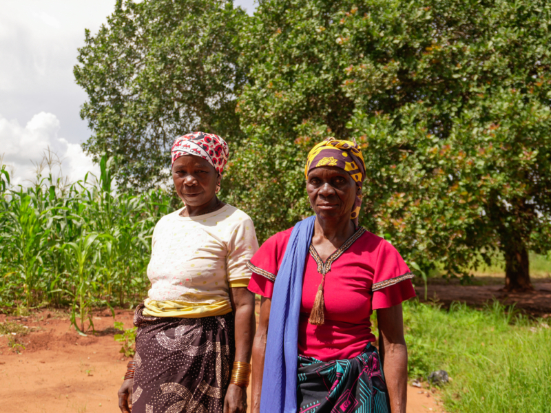 Laura Mário Freda (à esquerda) e Amina Mário (à direita), vizinhas em Miliva, foram afetadas pela maior onda de deslocamento causada pela violência no norte de Moçambique em 2025. ©Sofia Minetto/MSF