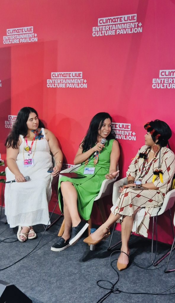 Renata Reis, ao centro, participa da mesa “Saúde e Adaptação Climática: mulheres indígenas e negras e a cura da Terra”, durante a COP30 no Brasil. ©Diego Klein