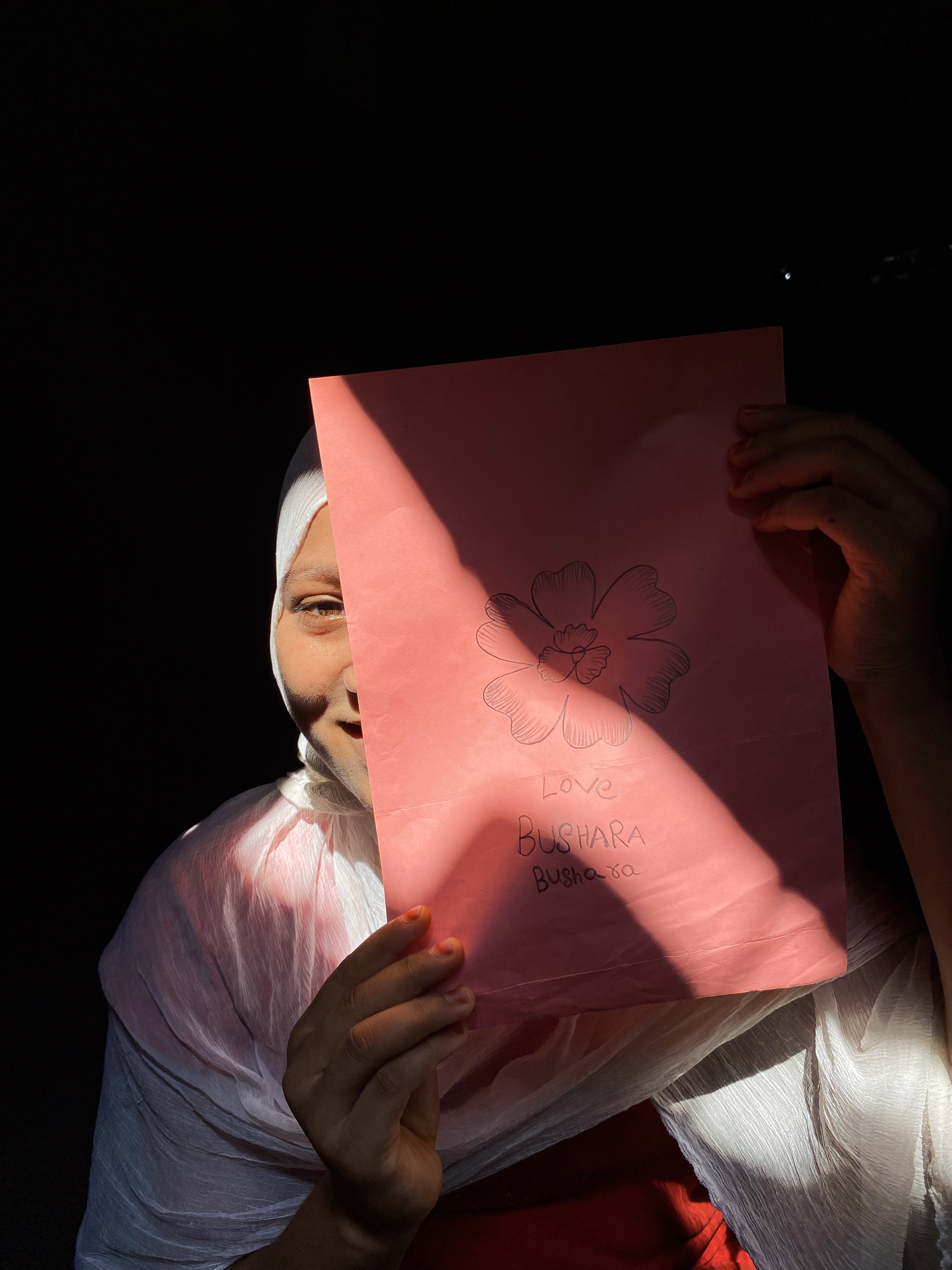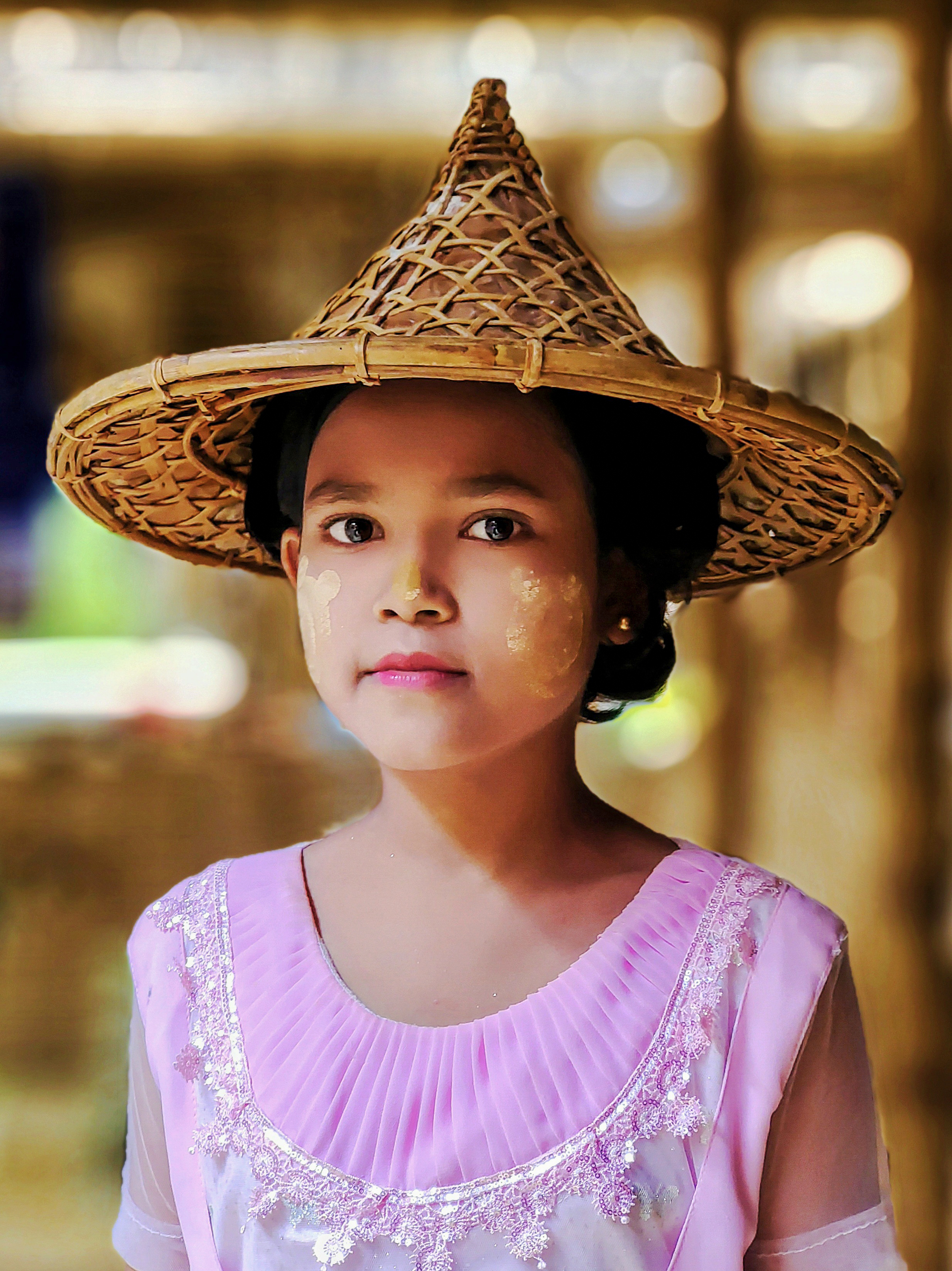 Ayesha, de 12 anos de idade, posa com tanaka, um cosmético tradicional, no rosto. Cox’s Bazar, Bangladesh, outubro de 2023 © Ishrat Bibi