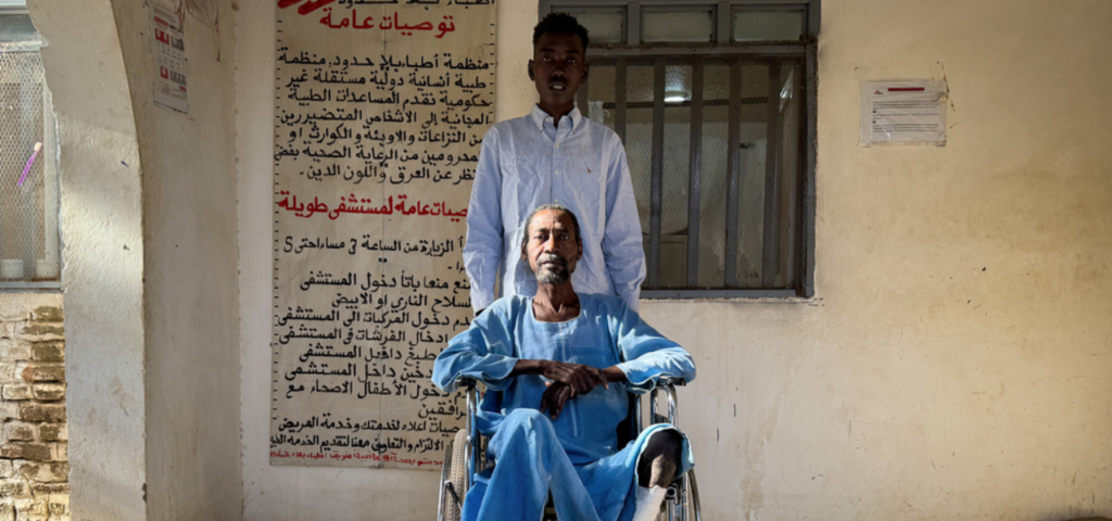 IA* trabalhava como vigia em uma universidade em El Fasher. Um dia antes da tomada da cidade, ele foi baleado na perna durante um tiroteio, o que causou a fratura da tíbia dele em vários lugares. “O ferimento estava sangrando, e meu irmão fez um torniquete. Então, ele me colocou em uma carroça puxada por um burro e me trouxe para cá. Você consegue imaginar a dor? Foi muito difícil”, diz ele. IA* passou três dias na trilha. Apesar dos esforços, parte de sua perna teve que ser amputada quando finalmente chegaram ao hospital de Tawila.