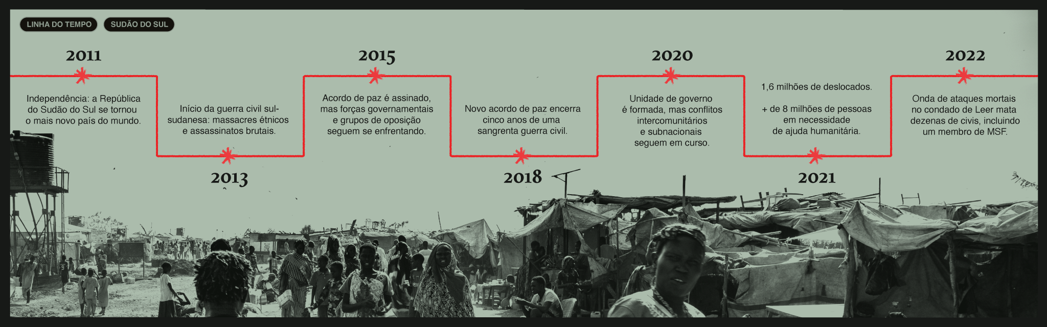 Convidamos você a conferir uma linha do tempo com os principais acontecimentos da última década no Sudão do Sul e as consequências do conflito para a sua população: