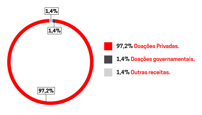 * A missão social inclui todos os custos relacionados com as operações em campo, bem como o apoio médico e operacional da sede diretamente alocado em campo e atividades de conscientização.